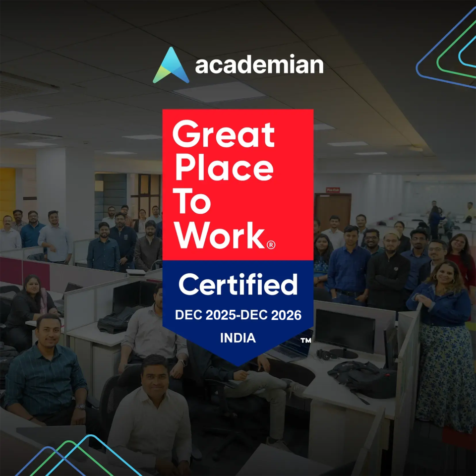 Academian has been officially certified as a Great Place to Work! This prestigious recognition stands as a testament to our commitment to fostering a positive, inclusive, and empowering workplace culture where innovation thrives, and employees are at the heart of everything we do.